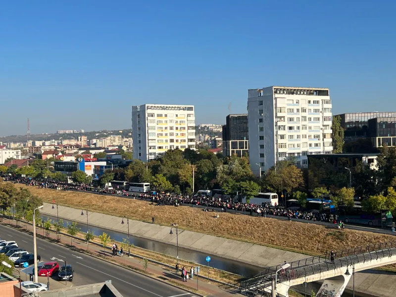 Pelerini veniţi din ţară şi străinătate formează un rând lung de câţiva kilometri pentru a se închina la racla cu moaştele Sfintei Cuvioase Parascheva, în ziua prăznuirii hramului acesteia, numărul acestora fiind în creştere de la o oră la alta.