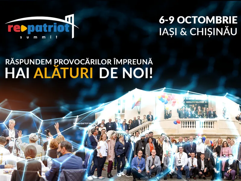 Este o tradiție deja, ca oamenii de afaceri români din toată lumea să se reunească în fiecare an în România la RePatriot Summit. Generator de afaceri și de idei strategice, evenimentul este deja la a VII-a ediție și în acest an se va desfășura între 6-9 octombrie 2022, în Iași, Capitala Culturală a României, și în Chișinău, Capitala Republicii Moldova. Summitul va aborda cele două provocări majore care au impact asupra românilor de pretutindeni: Războiul și Criza și va căuta soluții de răspuns adecvat pentru un viitor mai bun.