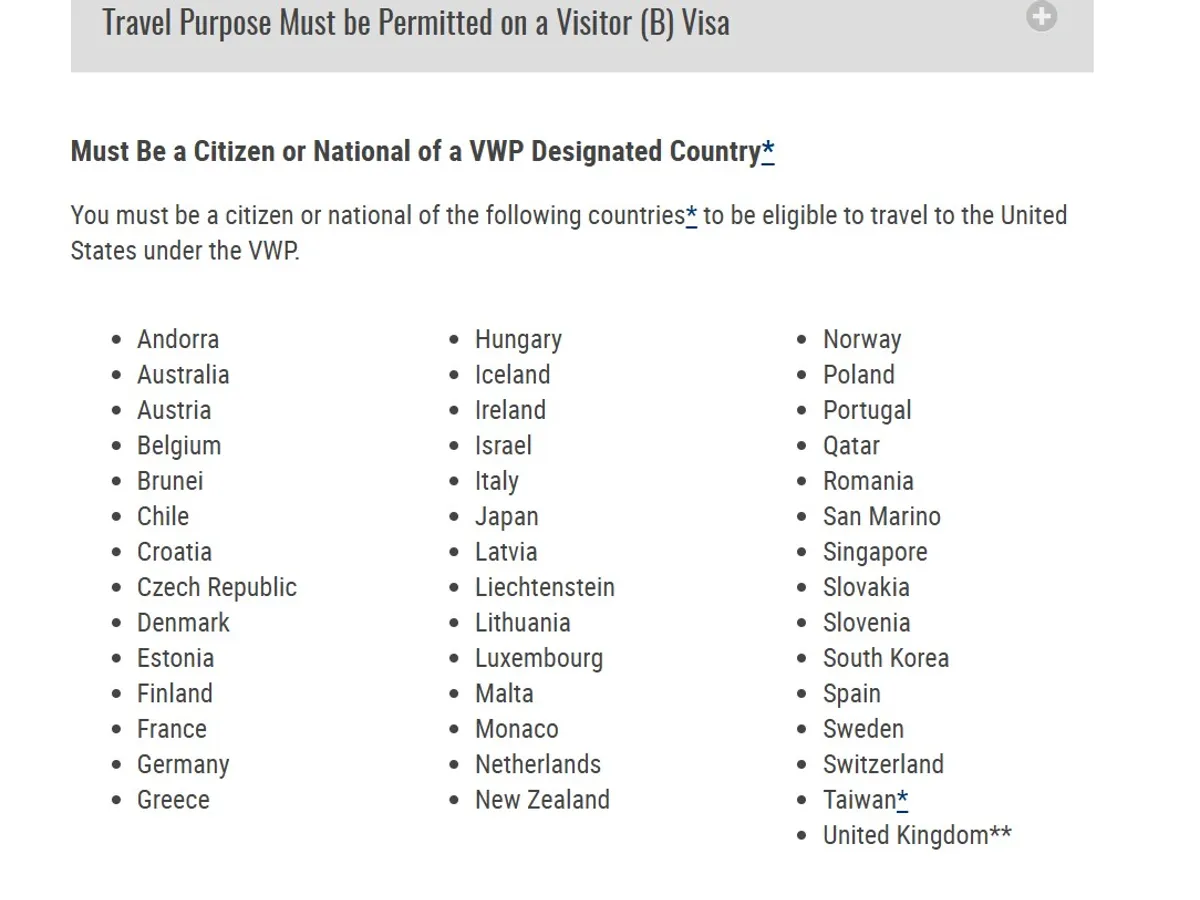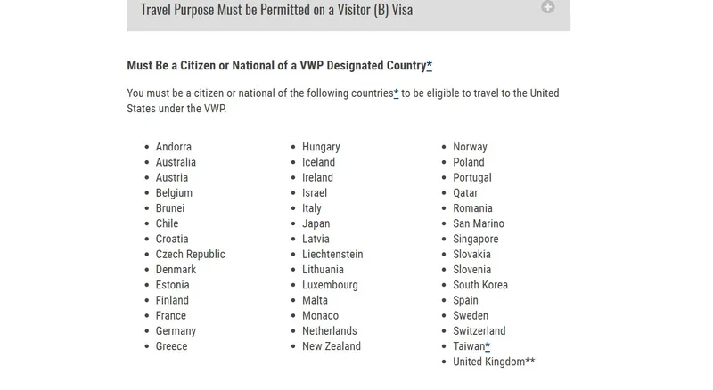 Trebuie să fiți cetățean sau resortisant al următoarelor țări pentru a fi eligibil să călătoriți în Statele Unite în cadrul VWP: