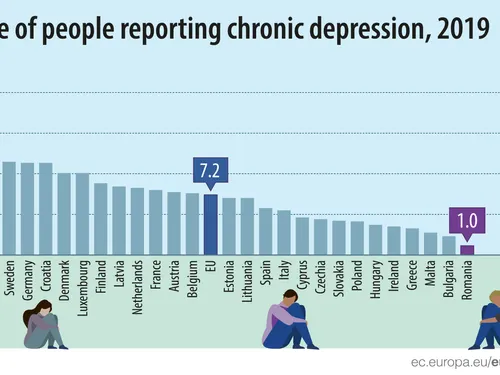 În schimb, ponderea persoanelor care au raportat depresie cronică a fost cea mai mică în România (1,0%), Bulgaria (2,7%) și Malta (3,5%).