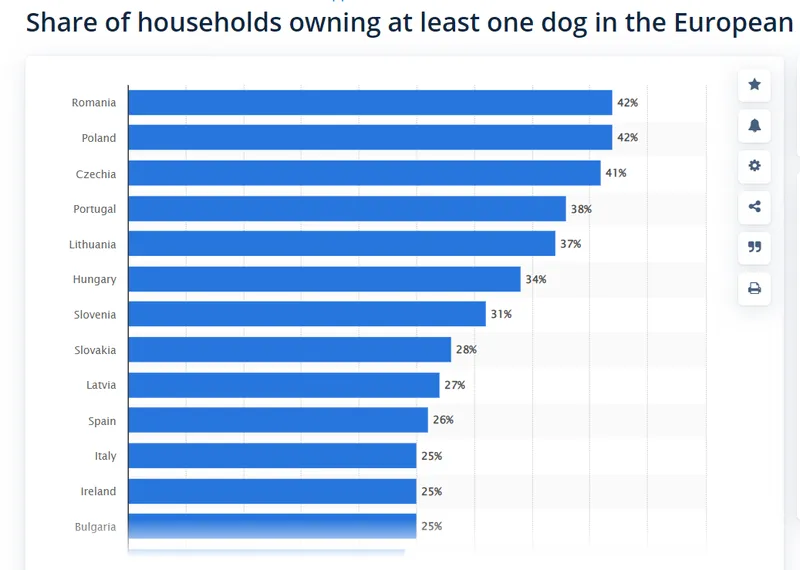 În comparație, România avea aproximativ 4,15 milioane de câini în același an. Dar procentual, raportat la numărul de gospodării, țara noastră stă mai bine.