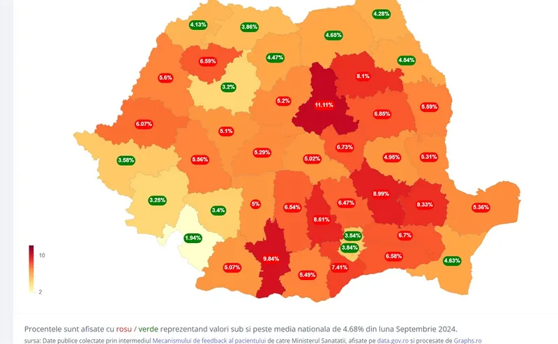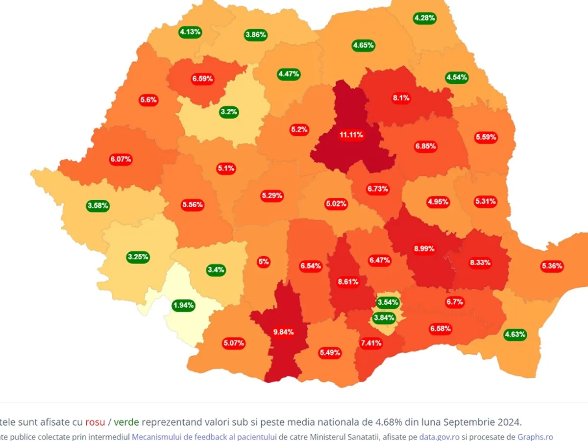 Iată câteva exemple, conform datelor publice colectate prin intermediul Mecanismului de feedback al pacientului de catre Ministerul Sănătății, afișate pe data.gov.ro și procesate de Graphs.ro