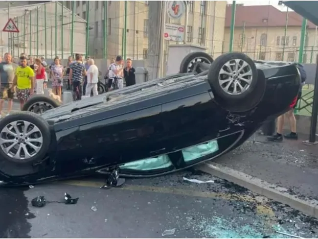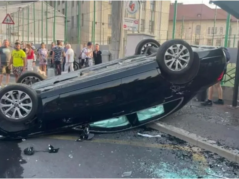Unul dintre şoferi a pierdut controlul volanului şi a intrat pe contrasens unde s-a izbit de celălalt autoturism, care, în urma impactului, s-a răsturnat în dreptul unei staţii de autobuz.