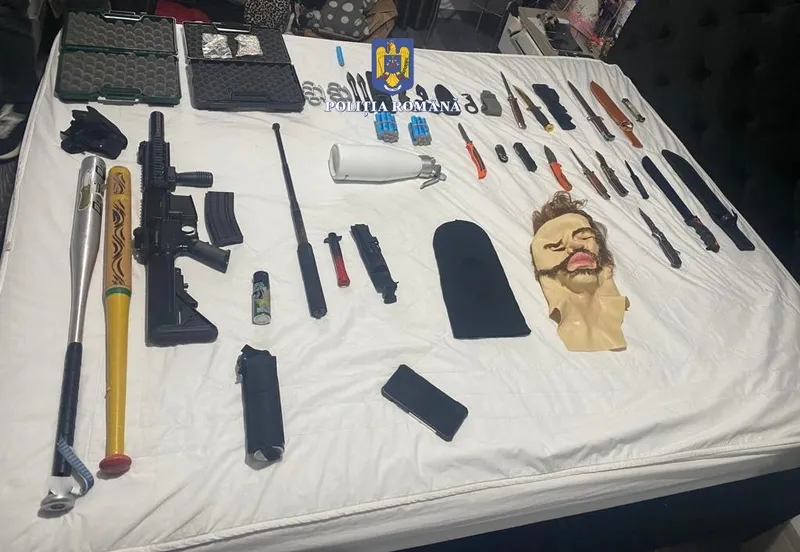 În urma perchezițiilor, au fost descoperite și ridicate două autoturisme, trei stații emisie recepție, 3 pistoale, 2 puști tip airsoft, o pungă cu un kilogram de muniție, 3 recipiente cu gaz comprimat, obiecte tăietor - înțepătoare, cagule, mănuși de protecție din material textil, articole vestimentare și 15 telefoane mobile.