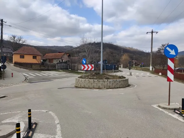 Un sat din județul Alba, cu 300 de locuitori, are un sens giratoriu „fără sens” în centrul localității. Amplasamentul rutier este construit chiar în fața casei primarului.