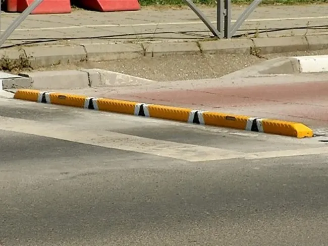 Limitatorul de viteză este montat înaintea unei treceri de pietoni din dreptul unei şcoli, unde maşinile trebuie să meargă cu cel mult 30 de kilometri pe oră.