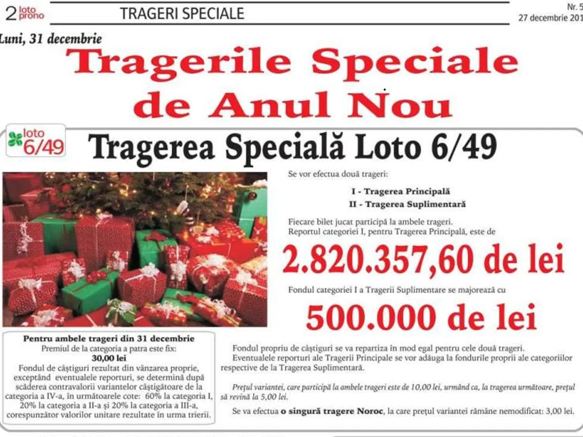 Din contră, pe pliantele care anunțau „tragerile speciale de Anul Nou”, Loteria Română a anunțat că ”se vor efectua două trageri, tragerea principală și tragerea suplimentară, iar fiecare bilet jucat va participa la ambele trageri”.