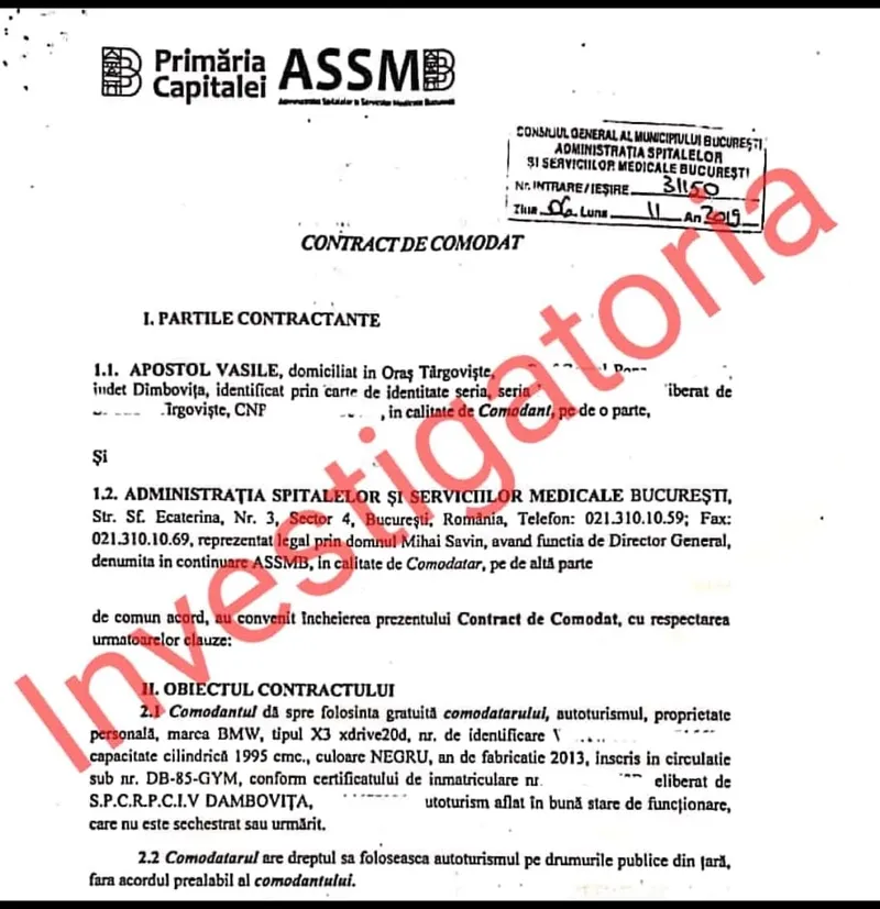 Contractul de comodat încheiat între director și ASSMB a fost publicat de Investigatoria.