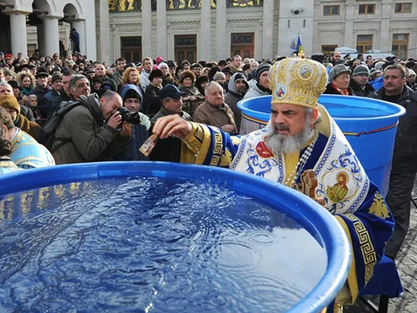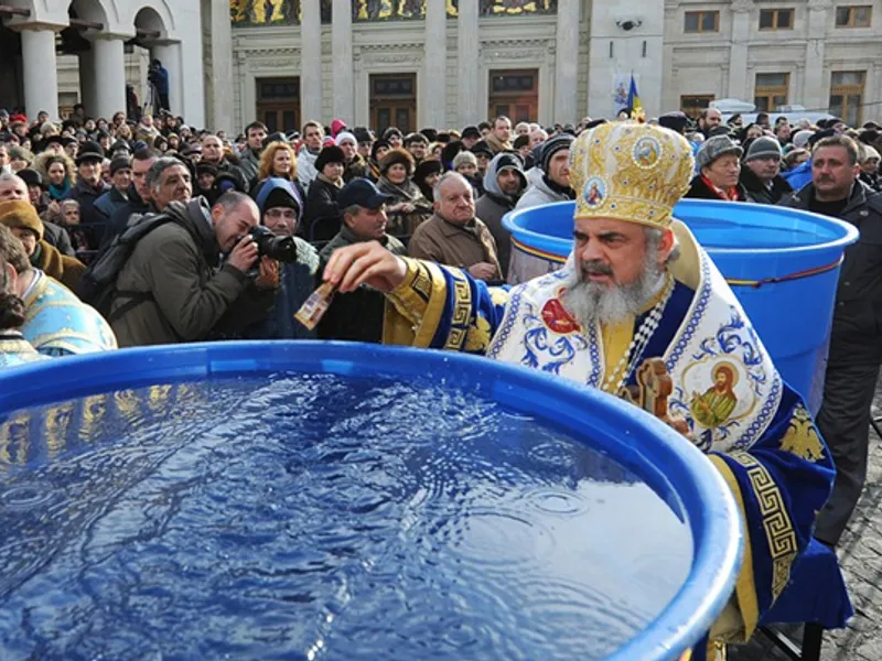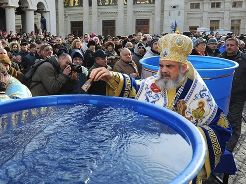 – Între orele 12:00 – 13:00 va fi săvârșită din nou Slujba Sfințirii Mari a apei (Aghiasma Mare) de Preafericitul Părinte Daniel, Patriarhul Bisericii Ortodoxe Române, într-un vas unic de argint, în Pridvorul Reședinței Patriarhale, după care credincioșii prezenți la slujbă vor fi binecuvântați prin stropire cu această Aghiasmă Mare din ziua de 6 ianuarie.