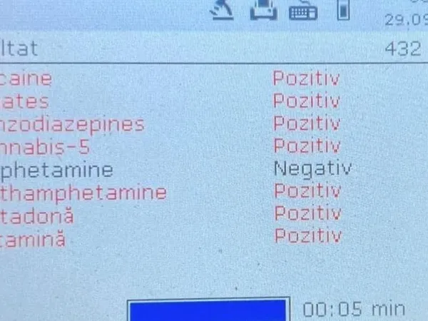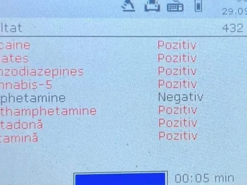 - Cu ce indică aici, mai aveați puțin și îl stricați dumneavoastră. Lipsește doar amfetamina. Mergeți cu noi pentru recoltarea de probe biologice.