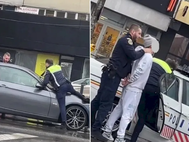 Aceștia au reacționat, blocând automobilul. Unul dintre polițiști s-a urcat chiar pe capota mașinii, scoțând și pistolul din dotare și îndreptându-l spre cel aflat în culpă, în timp ce celălalt l-a scos pe acesta cu forța din autovehicul.