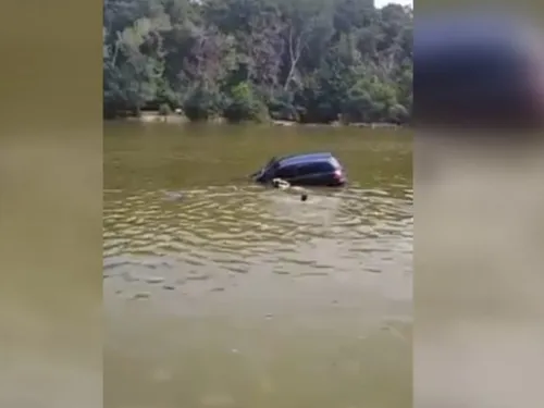 Femeia a plonjat cu mașina în lac sâmbătă, la orele amiezii, și a fost scoasă teafără din apă de un polițist local, care a înotat până la locul unde se afla mașina și a adus-o pe tânără cu bine la mal.