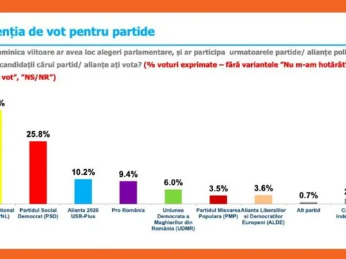 Sondaj INSCOP: PNL la 38,5%, urmat de PSD (25,8%) și USR PLUS (10,2%)