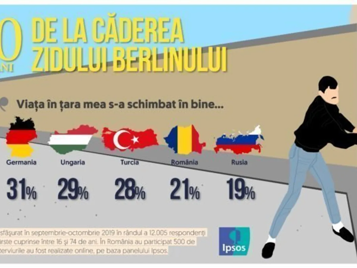 Europa a devenit un loc mai sigur ca urmare a căderii Zidului Berlinului și a prăbușirii regimurilor comuniste, sunt de acord 29% dintre respondenții la nivel global. Această opinie este mai pronunțată în rândul cetățenilor din Turcia (45%), Polonia (41%), Marea Britanie (36%) și România (34% la nivel național și respectiv 45% în rândul segmentului tânăr, cu vârsta până în 35 de ani). Concluzia nu e însă valabilă pentru Belgia, Rusia sau Germania, unde peste 40% dintre cei intervievați (în special seniorii de peste 50 de ani) resping această afirmație.