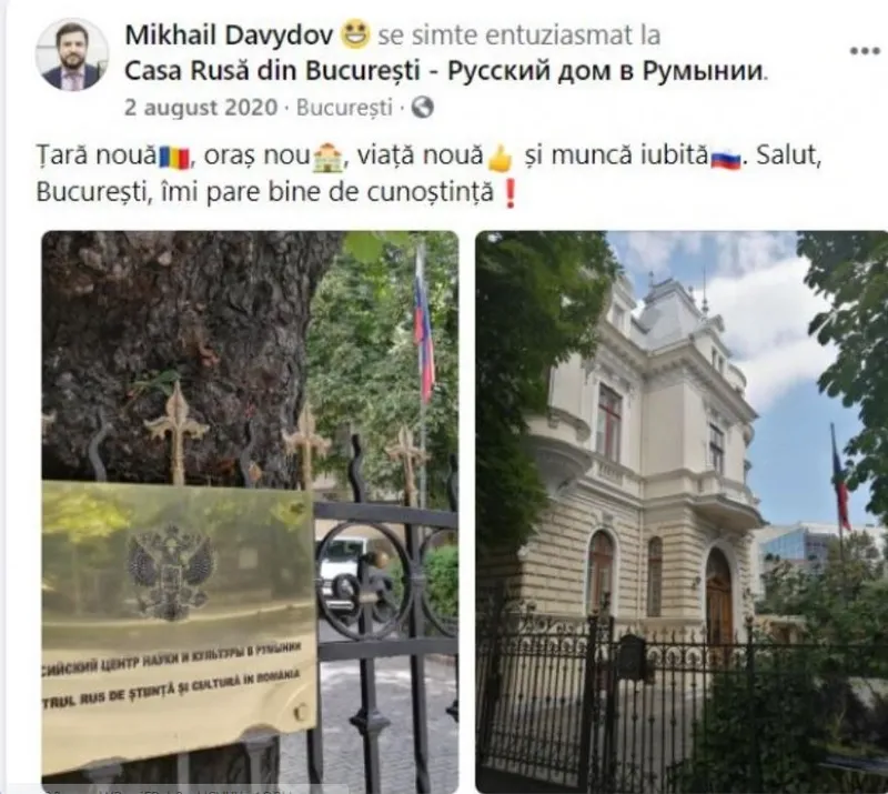 la 2 august, Mihail Davidov îşi anunța prezența la Bucureşti – la Centrul Rus de Știință și Cultură – printr-un mesaj postat pe contul personal de Facebook.