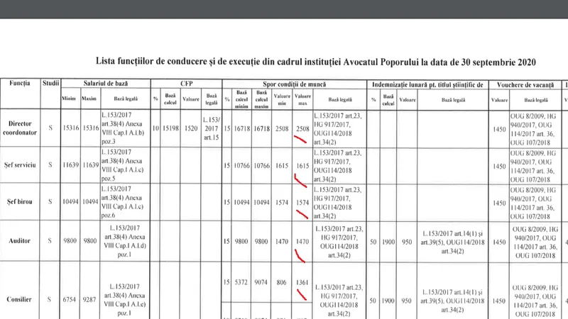 Spor de praf la Avocatul Poporului: Director – 2.500 lei/lună, șef serviciu – 1.600, auditor – 1.400