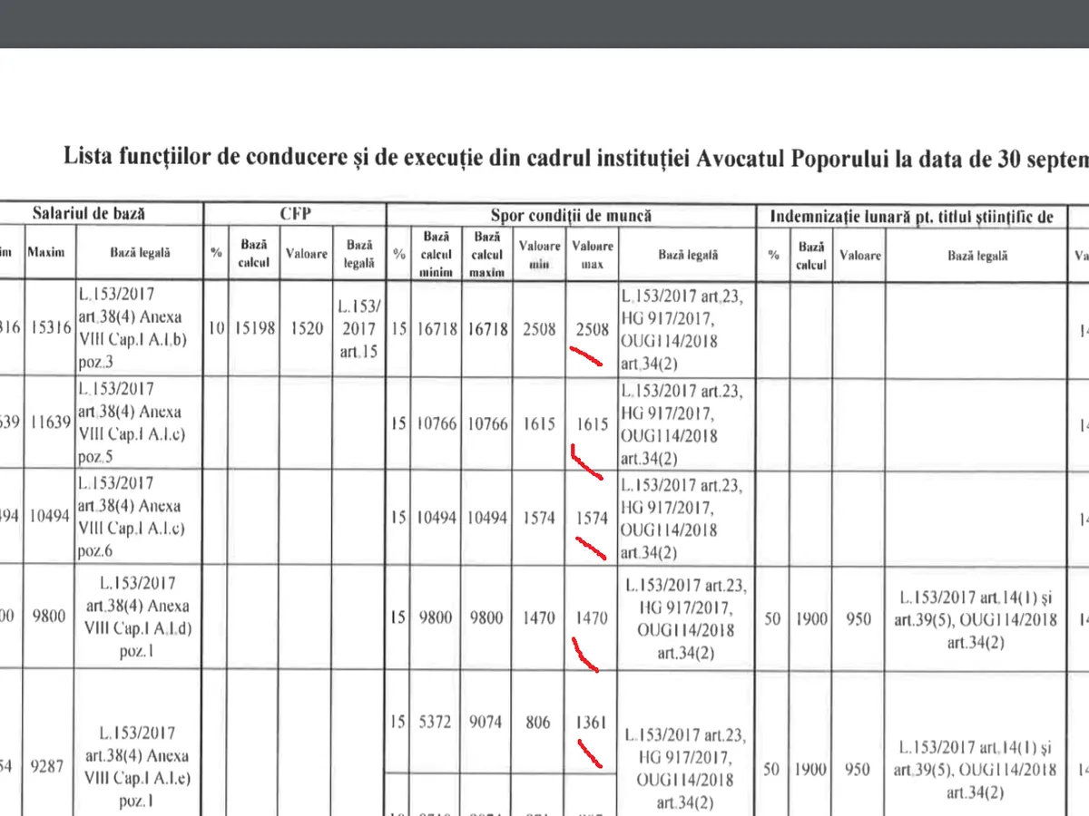 Șef-serviciu: spor de condiții vătămătoare 1.600 lei; salariul lunar – 13.500 lei