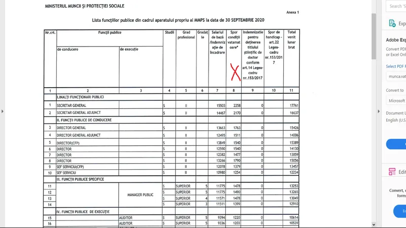 Sporuri în ministerul chemat să le taie: secretar - 2300 lei/lună, director – 2200, manager - 1500
