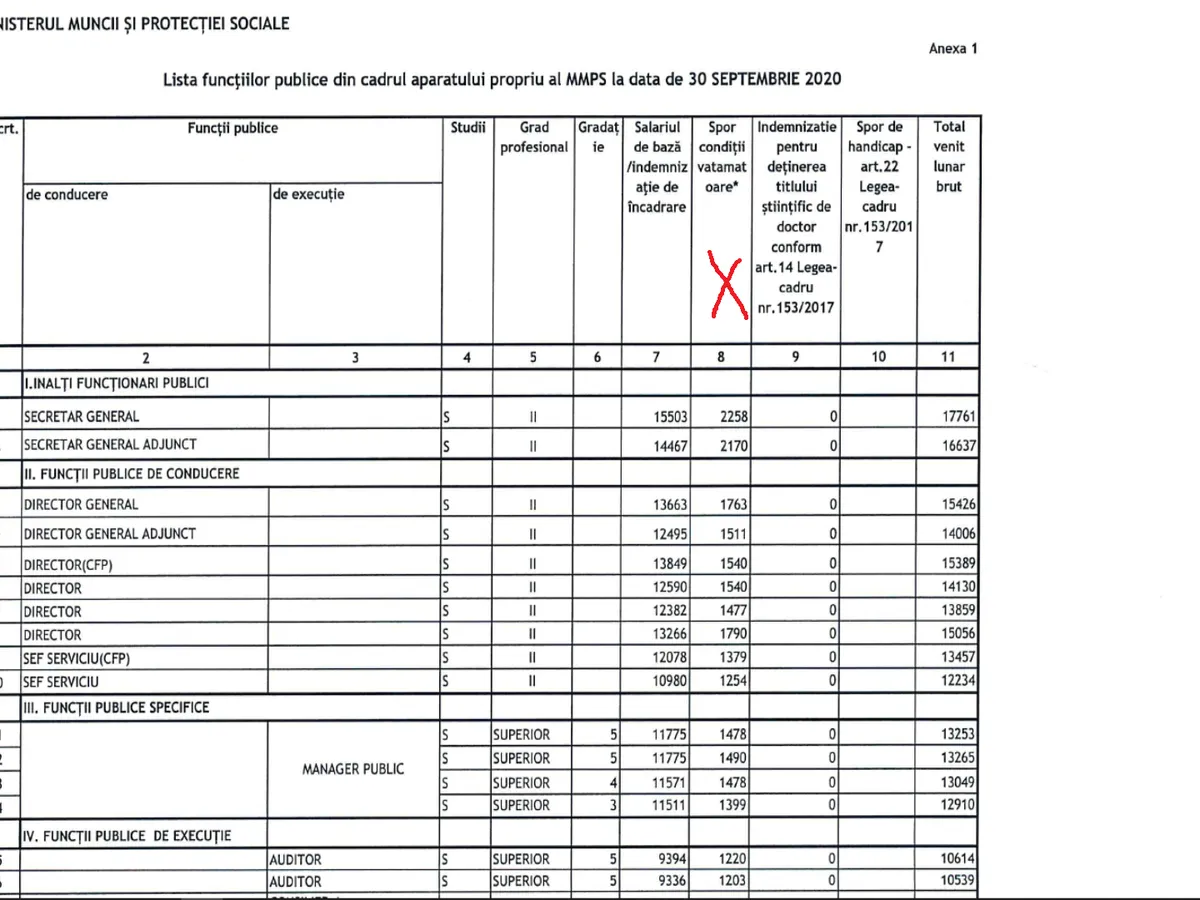 Șef serviciu: salariu – 12.078 lei / spor condiții vătămătore – 1.379 lei