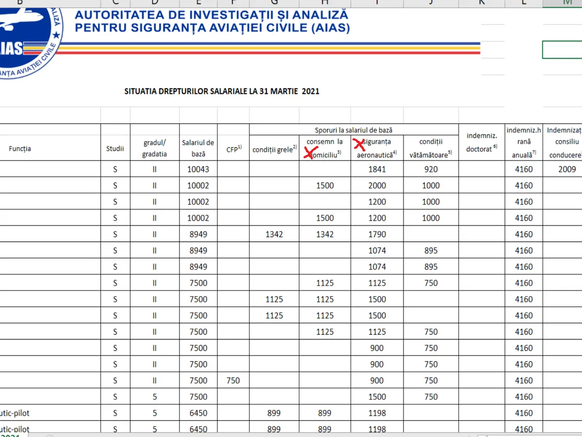Potrivit documentelor, de acest spor beneficiază directorul (1500 lei), inspectorul aeronautic (900 lei) sau șoferul (420 lei).