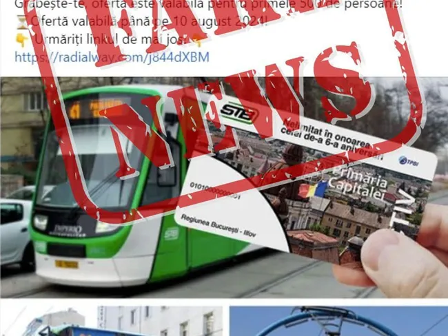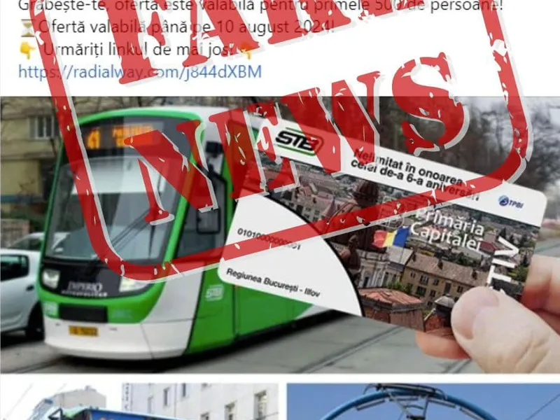 "Mesaj fals promovat pe Facebook! Într-o postare, este promovat în mod fals un mesaj cu referire la serviciul de transport public din Bucureşti.