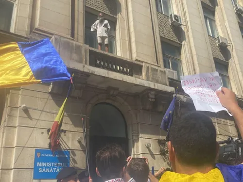 ”Stegarul dac” a fost amendat după protestul de la Ministerul Sănătății. El a fost sancționat cu o amendă de 1.500 de lei după ce s-a urcat pe clădirea instituției.