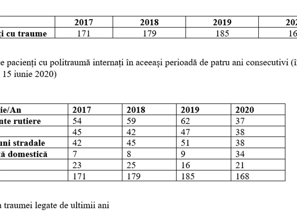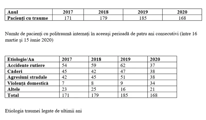 În perioada 15 martie-15 iunie 2020, au existat 168 de pacienți internați în clinica noastră pentru politraumatisme”, arată studiul.