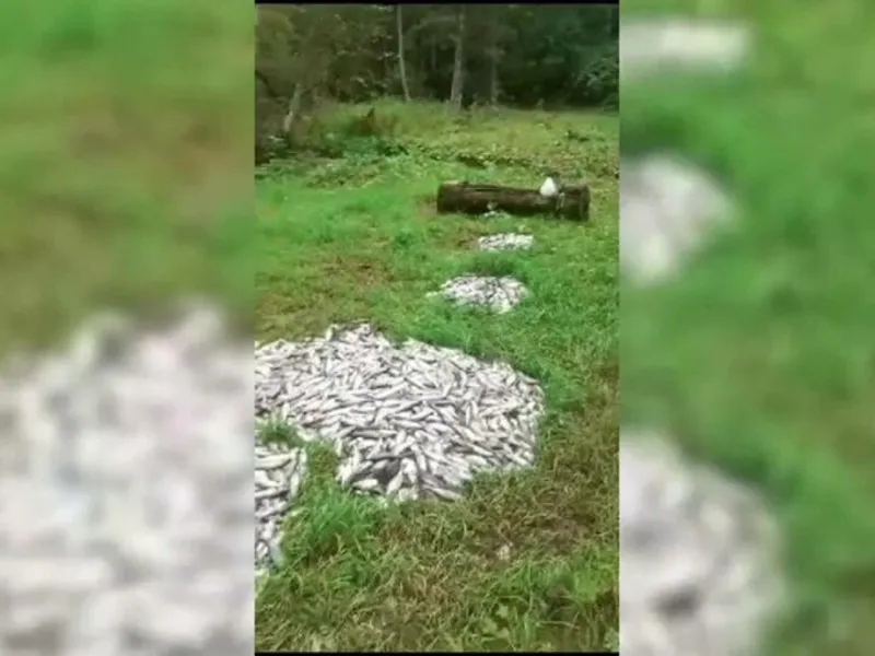 Mii de pești morți au fost găsiți la marginea unei păduri din județul Bistrița, unde vin, de obicei, animalele sălbatice în căutare de hrană. Autoritățile încearcă să afle ce s-a întâmplat.
