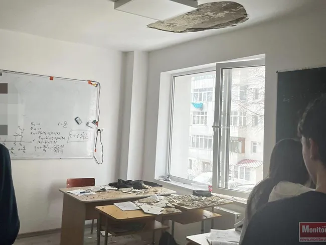 Un incident grav s-a produs miercuri dimineață la un liceu din municipiul Botoșani, unde o parte din tavanul unei săli de clasă s-a prăbușit în timpul orelor. Bucăți de plafon au căzut peste catedră și peste prima bancă, iar un elev a fost rănit.