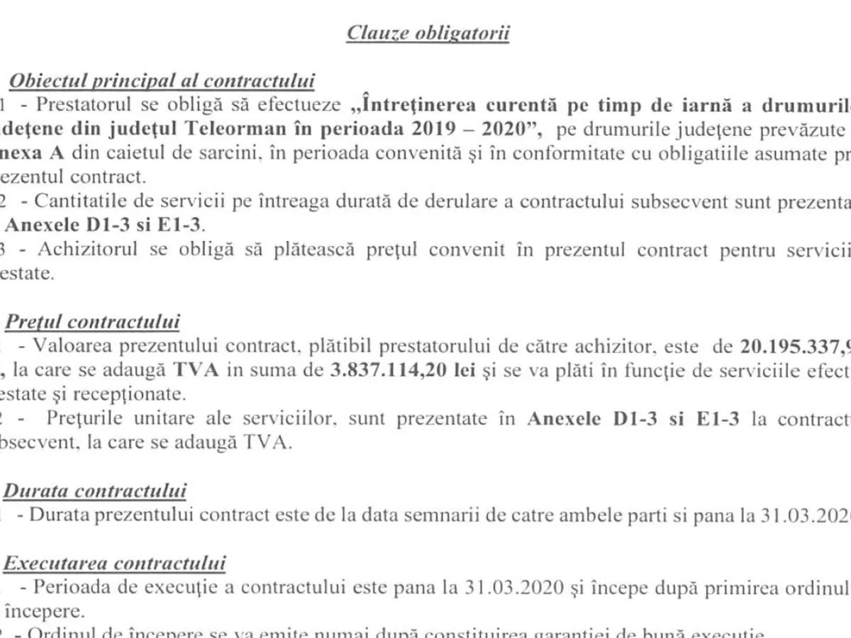 Pe 7 octombrie 2019 s-a semnat contractul 162 între Tel Drum și Consiliul Județean Teleorman. Obiectivul principal al contractului stipula că „prestatorul se obligă să efectueze întreținerea curentă pe timp de iarnă a drumurilor județene din județul Teleorman în perioda 2019 – 2020.