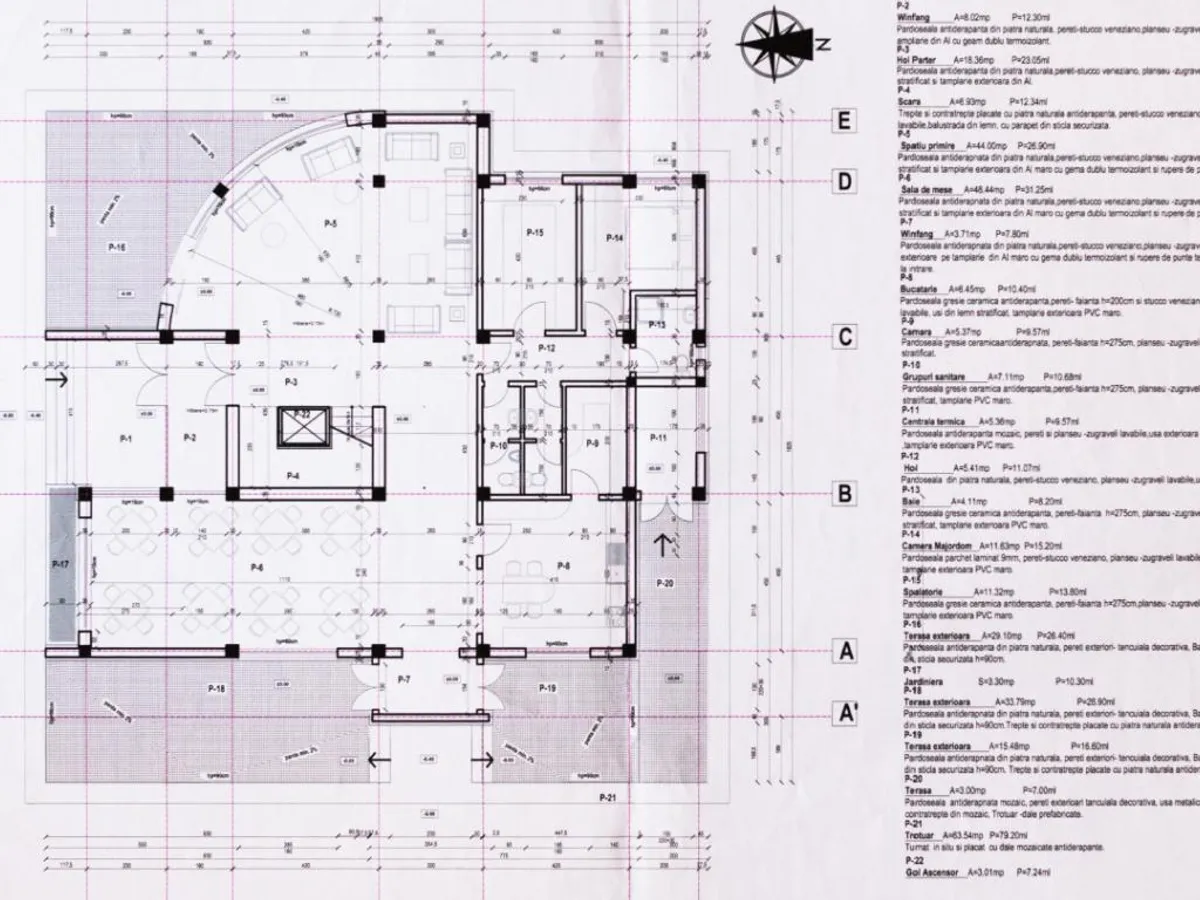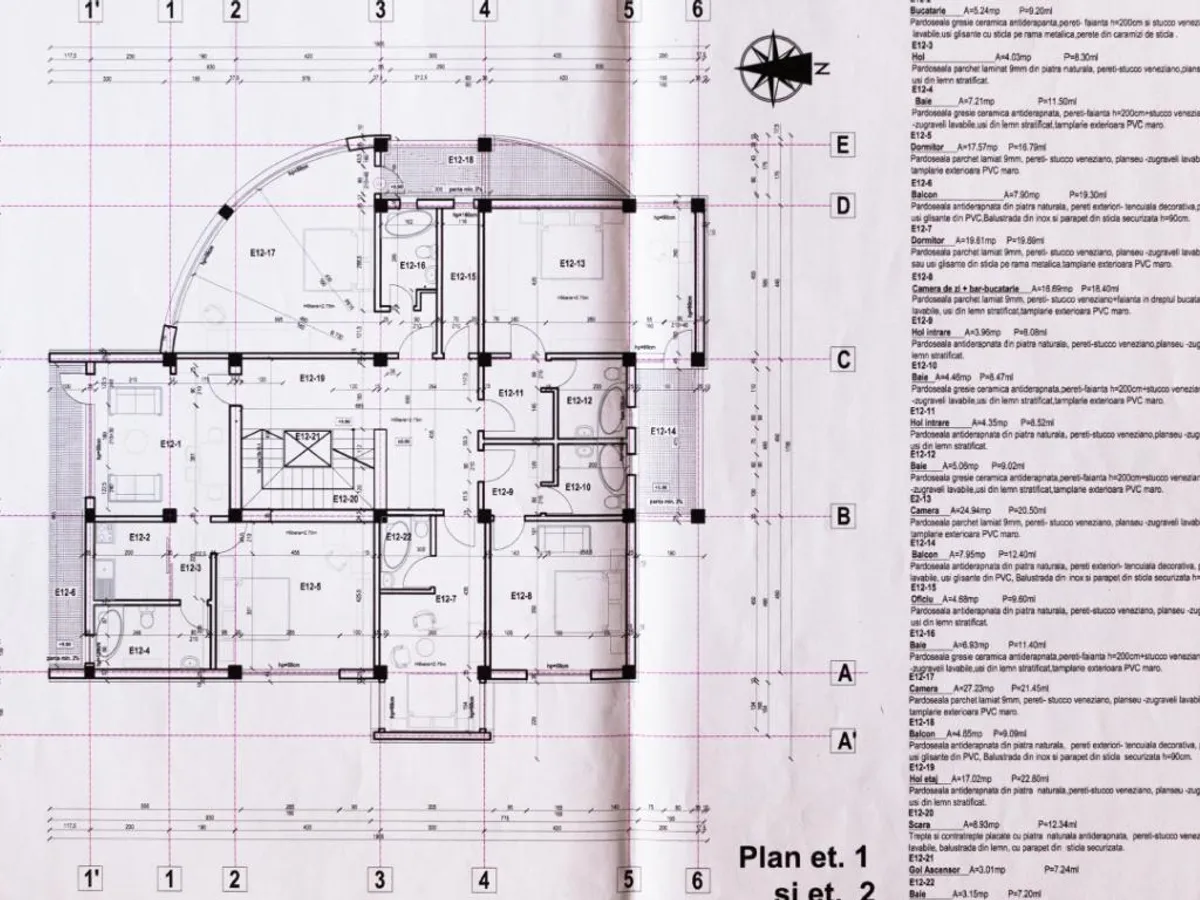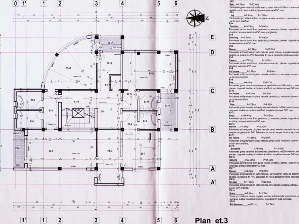 Ambele, înconjurate de terase imense cu balustrade de inox și mozaicuri. Etajul 1 e compus din vreo trei dormitoare echipate cu băi, două livinguri, altă sală de mese, cameră de relaxare, bucătărie etc. Dormitorul baronial se află la etajul 2, întins pe 36,16 mp, cam cât o garsonieră din București, la care mai pui un dressing de 20 mp, un balcon pe toată lățimea și două băi în oglindă. Livingul și biroul ocupă fiecare aproape 30 de mp, dar sunt despărțite de o bucătărie cu un balcon cât ea. Holul lat de la 2 continuă cu două băi și încă un dormitor care corespunde prin dressing cu cel mare. Distracția explodează la etajul 3, unde liftul te lasă în epicentrul unei terase circulabile de 200 mp. La nevoie, o baie imensă își face datoria. Și mai e un un etaj. La 4, deasupra marii terase, e prevăzută o alta ceva mai intimă, de 36 mp”, este descrierea planurilor găsite în mapa roșie din valiză.