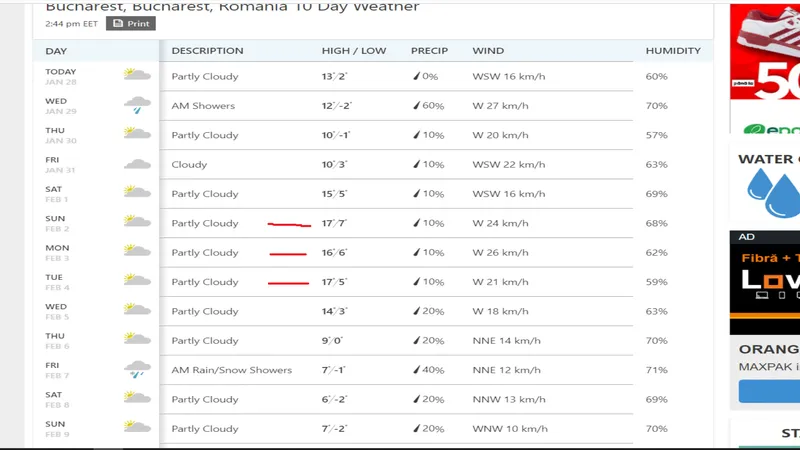 Pentru februarie media maximă este de 7 grade, în timp ce duminică se va înregistra de două ori și jumătate mai mult.