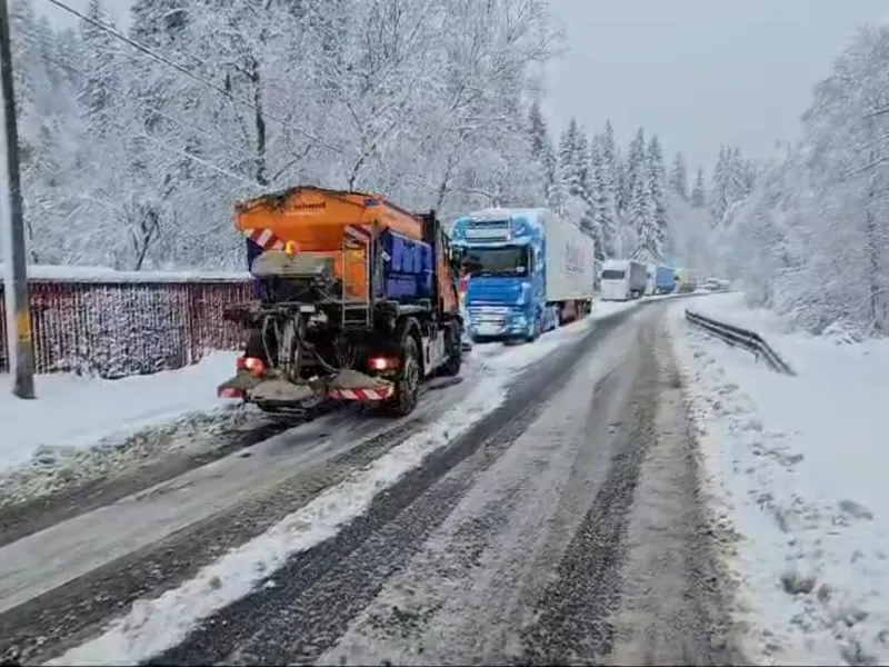 TIR-uri blocate pe DN1, din cauza zăpezii. Unele nu aveau anvelope de iarnă