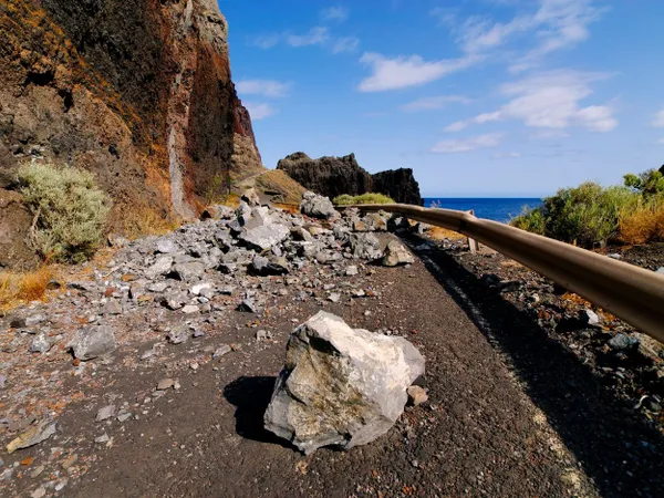 Trafic blocat pe centura staţiunii Călimăneşti din cauza căderilor de pietre de pe versanți
