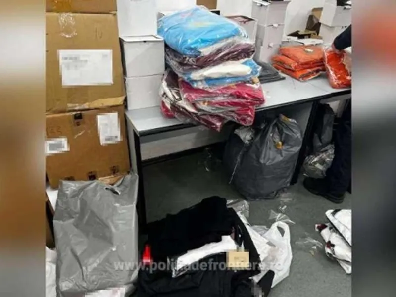 Trafic de mărfuri contrafăcute la Giurgiu: peste 3.000 de articole, în valoare de 800.000 de lei, confiscate. În urma inventarierii a rezultat cantitatea de 3.040 de articole vestimentare și de parfumerie'', informează sâmbătă Poliția de Frontieră.
