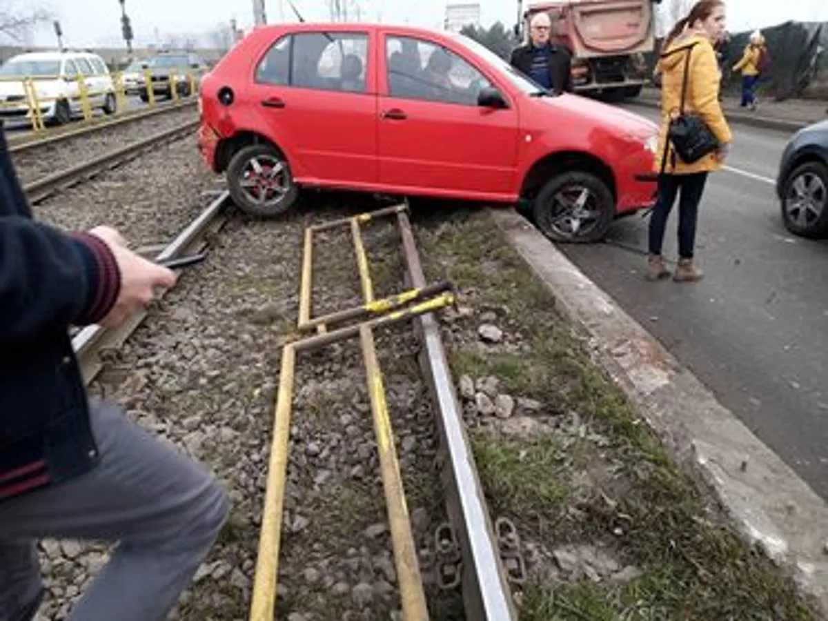 Conform martorilor, o basculantă ar fi aruncat pe șinele de tramvai un autoturism. Femeia care se afla la volan a rămas blocată în habitaclu, dar fără să fie rănită. Înainte de ora 10.00, la jumătate de oră după producerea accidentului, nu se intervenise pentru eliberarea liniei de tramvai.