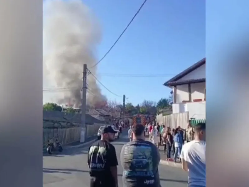 3 case au ars violent vineri seară în Cernavodă. Pe imaginile surprinse de martori se observă cum fumul gros se ridică deasupra clădirilor, în timp ce oamenii privesc cu sufletul la gură cum incendiul amenință casele învecinate.