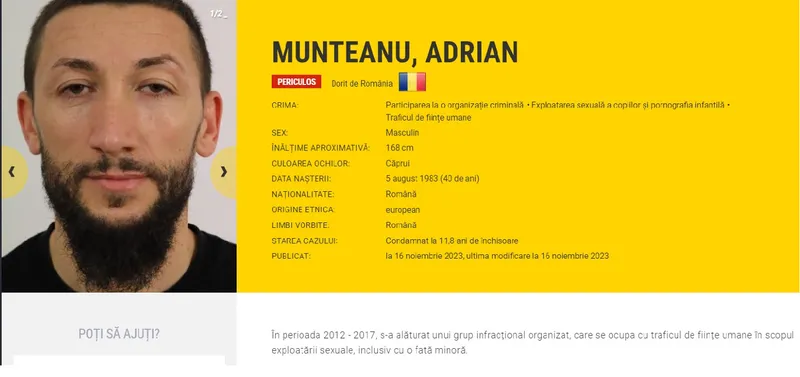 Munteanu Adrian - În perioada 2012 - 2017, s-a alăturat unui grup infracțional organizat, care se ocupa cu traficul de persoane, în scopul exploatării sexuale, inclusiv cu o fată minoră. Acesta a fost condamnat la 11 ani și 8 luni de închisoare.