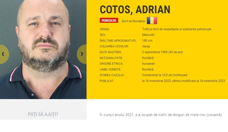 Cotos Adrian - În cursul anului 2021, s-a ocupat de trafic de droguri de mare risc (cocaină), fiind condamnat la 10 ani și 5 luni de închisoare.