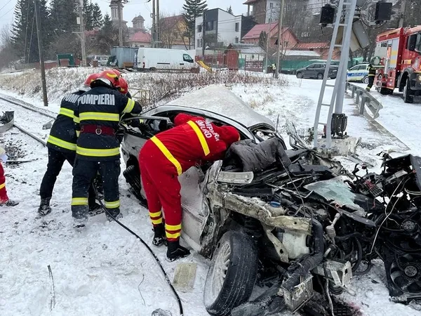Accidentul a avut loc în stațiunea Bușteni, după ce șoferul unei mașini n-a oprit la trecerea la nivel cu calea ferată care străbate staţiunea. Cele trei persoane au fost transportate la spital cu multiple traumatisme.
