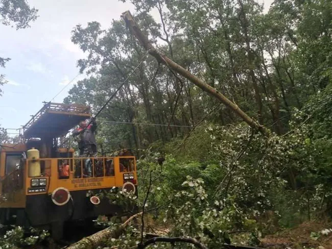 Căderea unor copaci a generat lipsă de tensiune în linia de contact, ceea ce a condus la întreruperea temporară a circulaţiei pe mai multe secţii feroviare, survenind astfel întârzieri cuprinse între 30 şi 440 minute în circulaţia trenurilor.