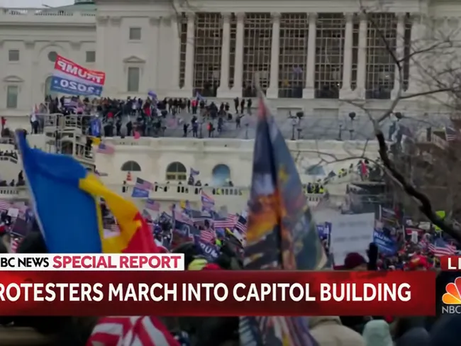În imaginile filmate de posturile de televiziune internaționale la protestele de la Washington, soldate cu cinci morți, se vede tricolorul românesc cu gaură, la fel ca acelea folosite la Revoluția din 1989. În imagini se văd și însemne asemănătoare cu cele ale AUR.