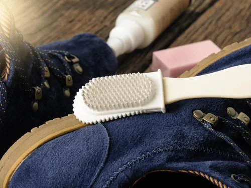 Testează soluția de oțet pe o zonă mică și ascunsă a pantofului pentru a te asigura că nu decolorează materialul. Nu freca prea tare; folosește mișcări de tamponare pentru a evita deteriorarea texturii delicate a pielii întoarse. După ce pantoful s-a uscat complet, periază zona curățată pentru a reîmprospăta textura și a uniformiza aspectul. Evită uscarea cu surse directe de căldură (uscător de păr, calorifer), deoarece acestea pot rigidiza pielea întoarsă.