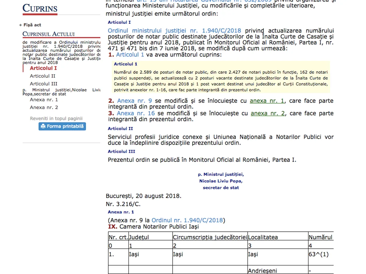 Dar și mai interesant, șapte zile mai târziu, un secretar de stat subordonat lui Tudorel Toader a semnat Ordinul ministrului Justiției prin care numărul de notari din Iași a fost suplimentat cu un loc!