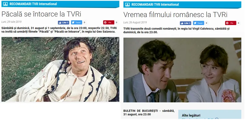 Luni, 26 august, TVRi anunța că sâmbătă și duminică, de la ora 23.00, vor rula filmele "Buletin de București", respectiv "Căsătorie cu repetiție", în regia lui Dumitru Calotescu.