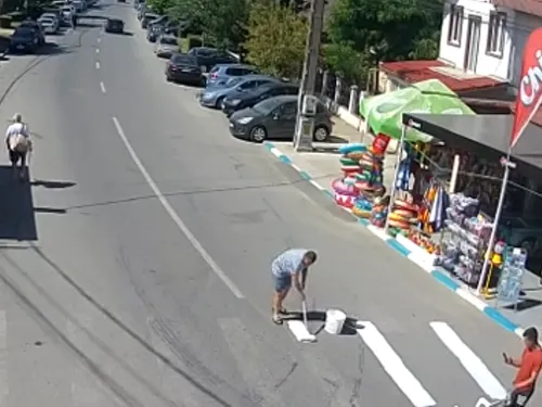 Gestul inconștient al bărbatului putea avea urmări grave dacă un pieton care trecea pe acolo și confunda trecerea falsă cu una adevărată.