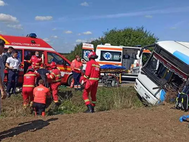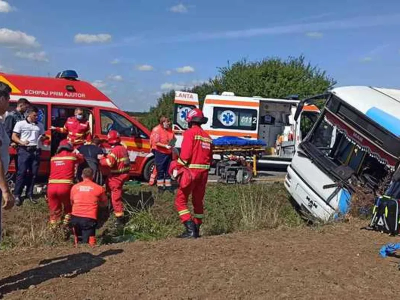 Un autobuz s-a răsturnat pe DN 19, în Bihor: opt persoane, în stare gravă, la spital