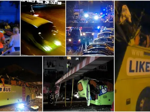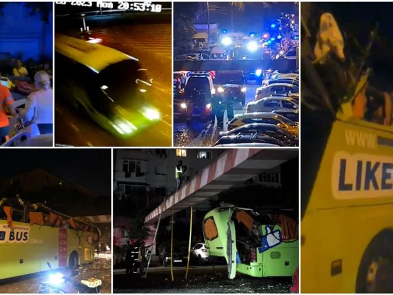 Accidentul devastator s-a petrecut după ora 21:00. La impactul cu podul, partea superioară a autocarului a fost distrusă, iar călătorii au fost aruncaţi efectiv pe jos.