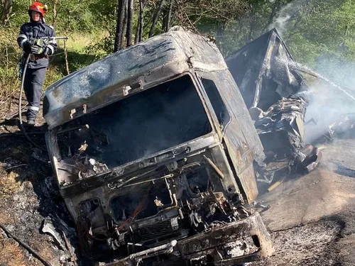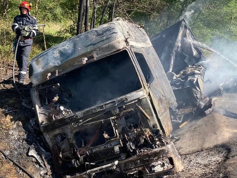 "Pe DN 66 Petroşani - Haţeg, la kilometrul 171+500 de metri, la ieşire din localitatea Ohaba de sub Piatră, judeţul Hunedoara, un autotren a părăsit partea carosabilă şi s-a răsturnat, ulterior izbucnind un incendiu. În urma evenimentului, şoferul tirului a decedat", informează Centrul Infotrafic din cadrul Poliţiei Române.