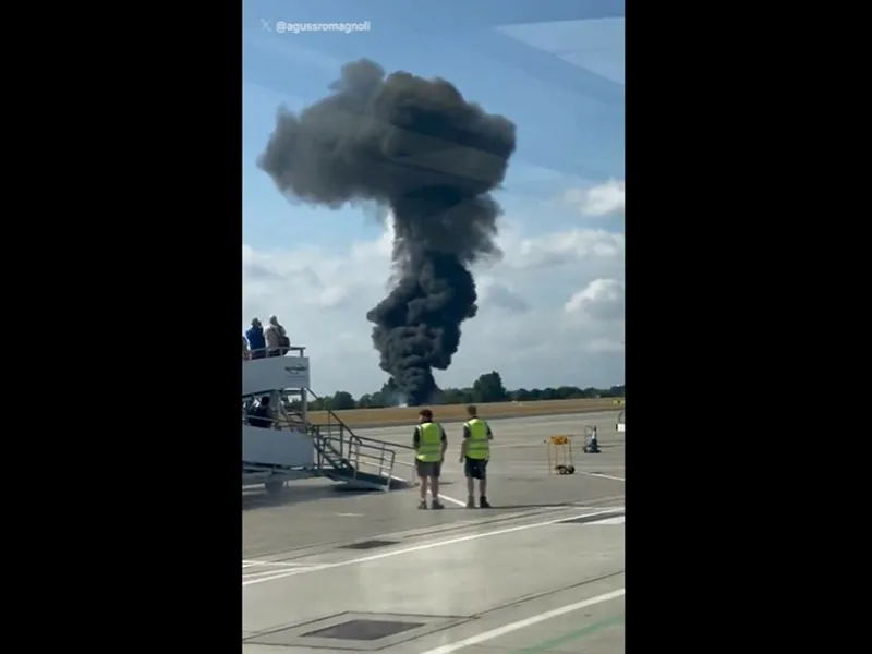 Imaginile postate online arată un nor mare de fum negru, un martor declarând presei locale că a văzut o „minge de foc uriașă”.